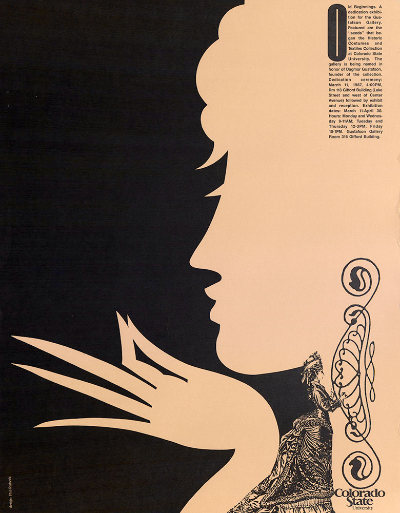 Poster for Old Beginnings exhibit at Gustafson Gallery. Includes information about exhibit.
