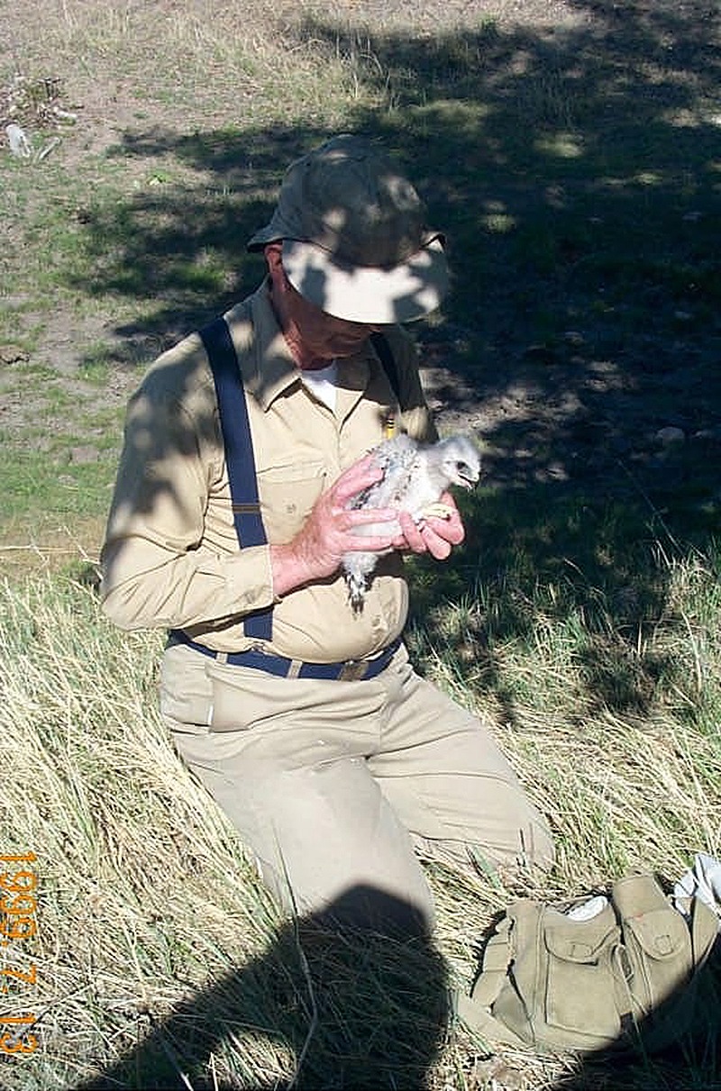 Ron Ryder banding young Swainson's hawk on SGS (added to db 7/21/2000).