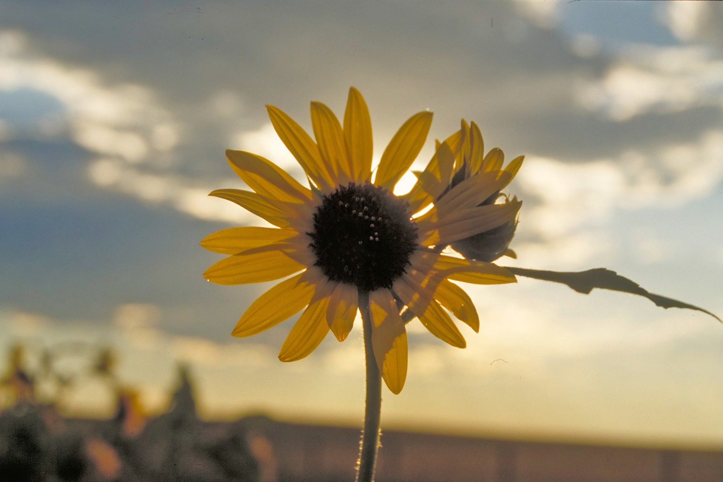 Single large yellow flower on SGS with second bud just opening.