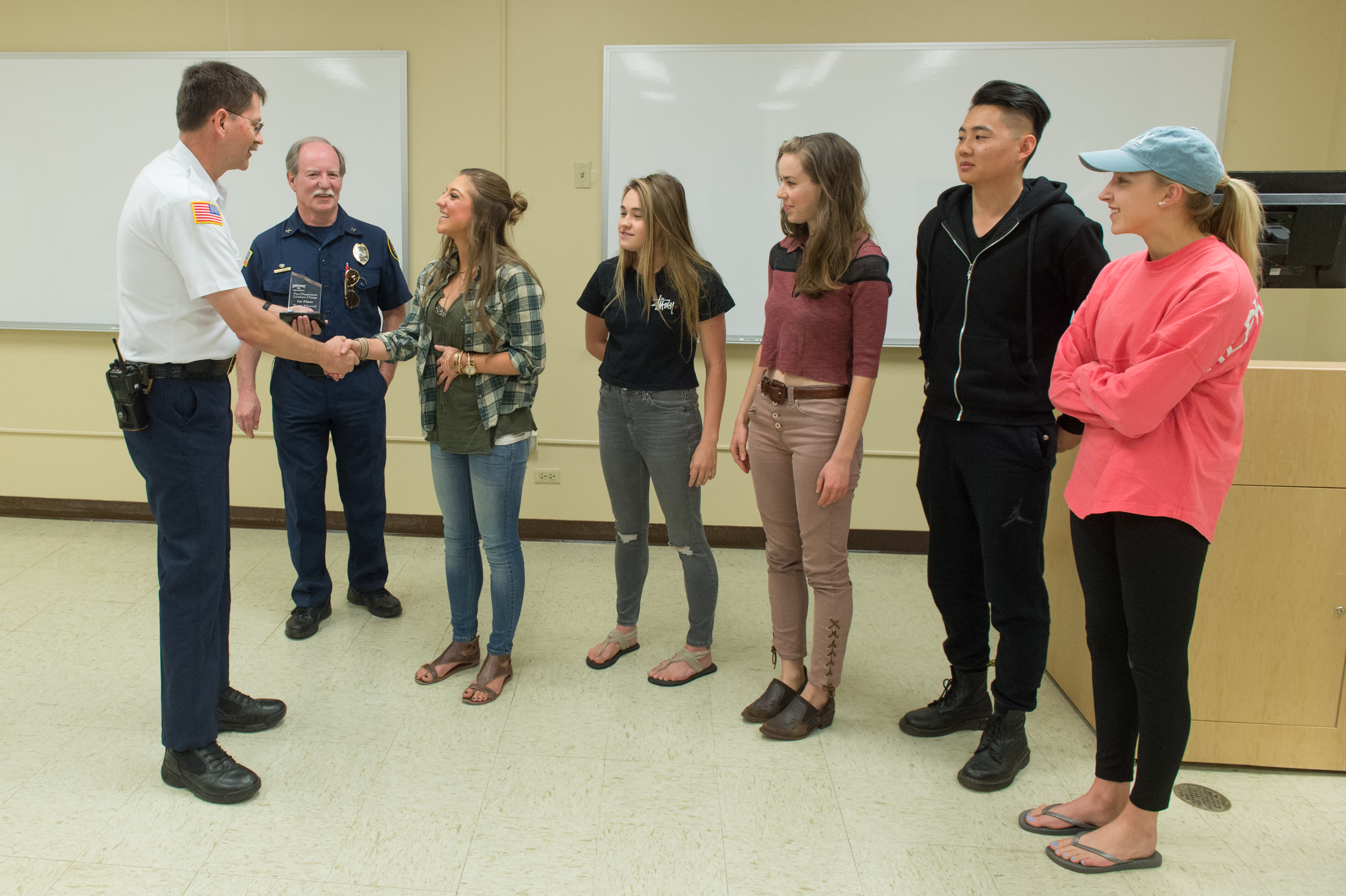 Team Marvel receiving 1st place (first place) award for their prototype firefighter uniform design
