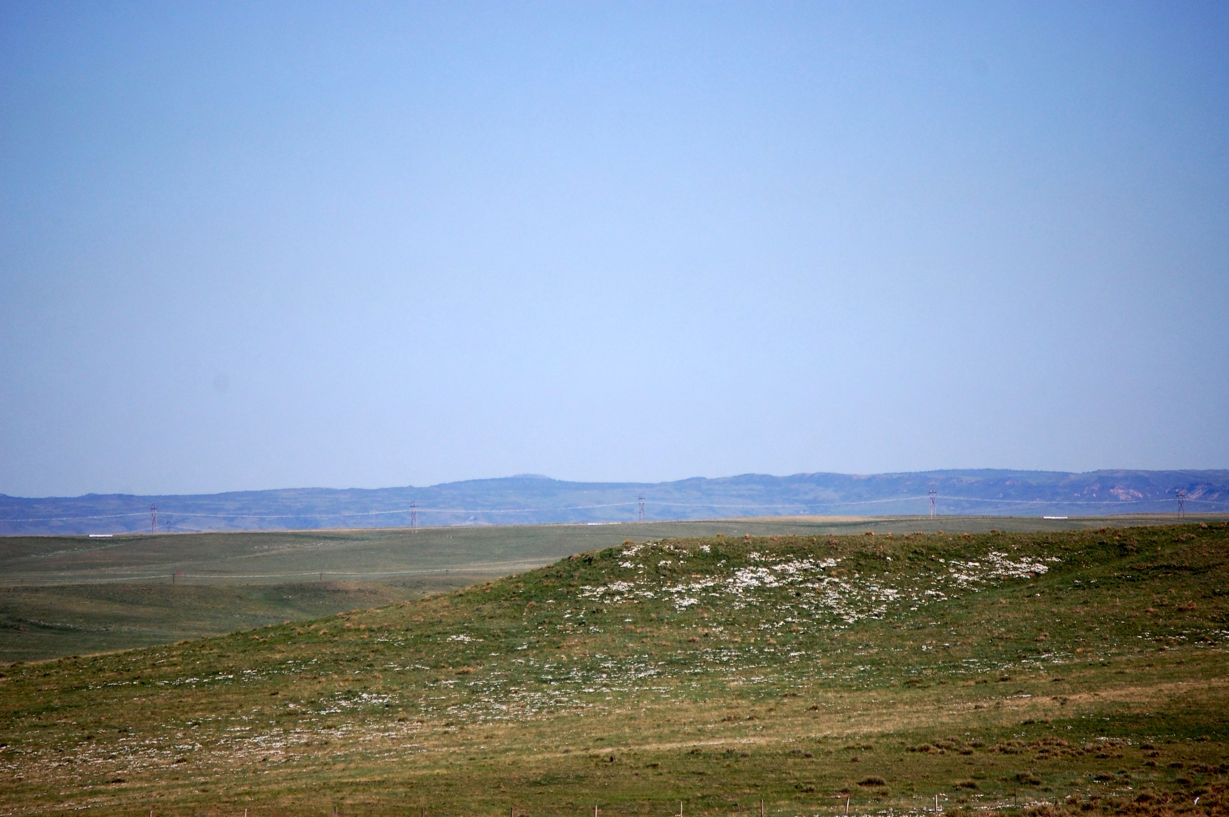 White flowers across hillside on the SGS, with buttes in the background.