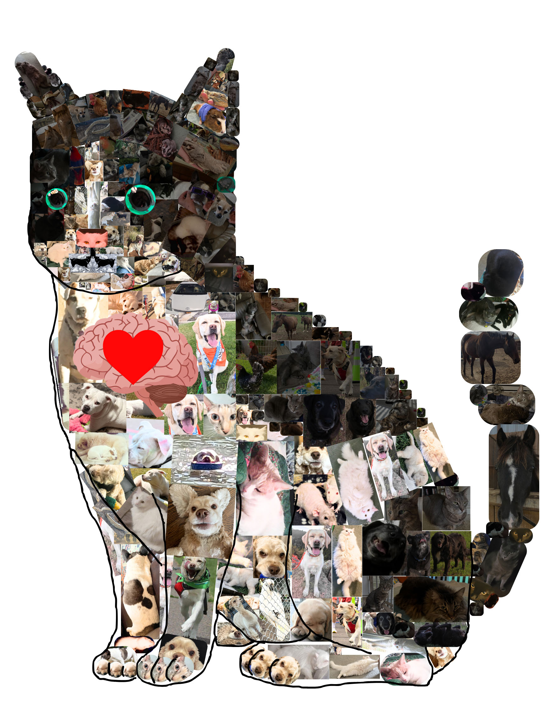 Mental health is a growing concern in the United States. Despite this, mental health is often misunderstood, misrepresented, or not taken seriously. Misconceptions about mental health can have devastating consequences, including high rates of suicide. It is crucial that mental health be given more attention and that those struggling are encouraged to seek help. For many people, pets can play a vital role in supporting mental health. Numerous studies have explored the health benefits of pet ownership and have found that pets not only improve mental well-being but also contribute to physical health, such as lowering blood pressure and reducing other cardiovascular problems. This thesis aims to present the research on how our pets at home help us each day. Since this was an art project, art will also be considered a behavior to improve mental health. To convey this message in art form, a collage of many different pets, from cats and dogs to crabs and rats, was created with a brain and heart in the center to show how important pets can be. The written and art pieces together aim to promote healthier ways to deal with mental health and promote more research on how pets are beneficial to humans.