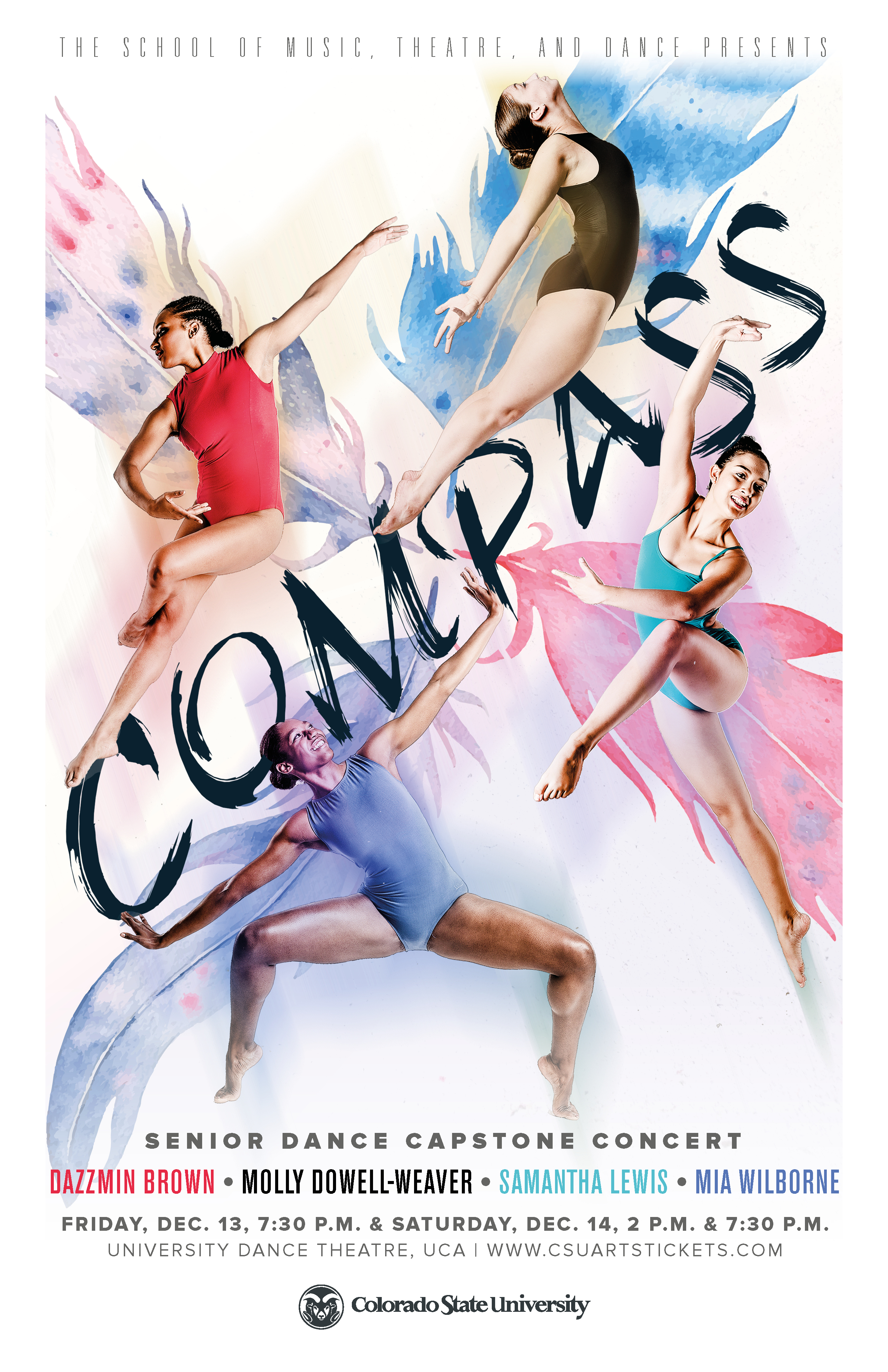 Compass: senior dance capstone concert: Dazzmin Brown, Molly Dowell-Weaver, Samantha Lewis, Mia Wilborne