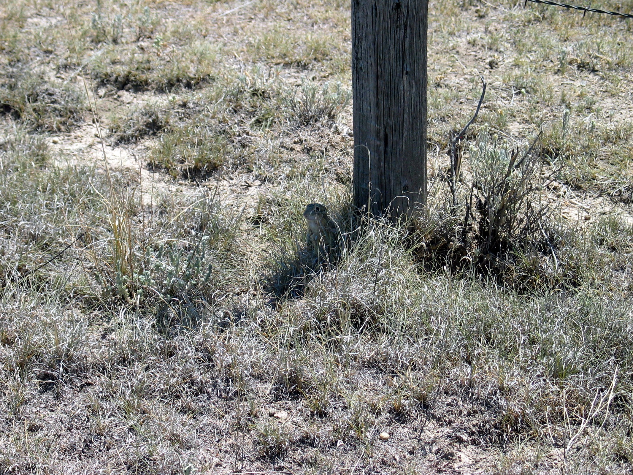Thirteen-lined ground squirrel cooling off in the shade of a fence post on the SGS.
