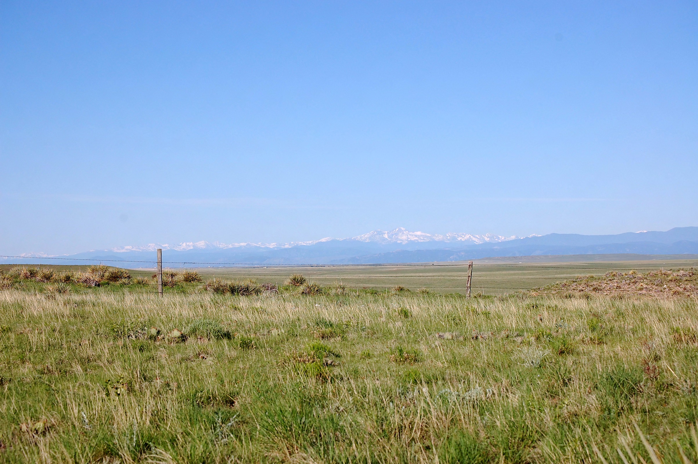 SGS greened up in spring with snow-capped Rockies in the distance.