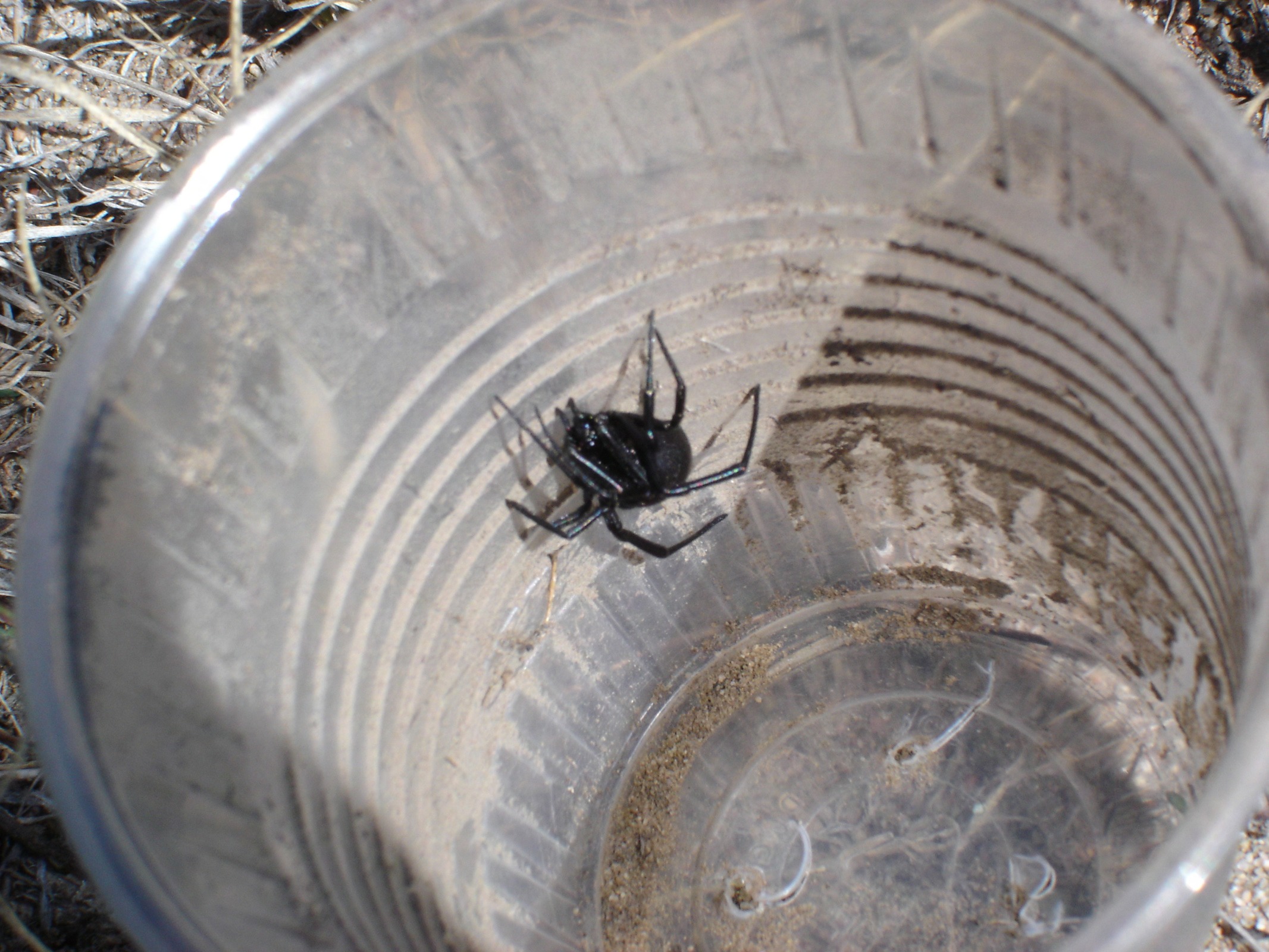 Black widow spider in plastic cup of pitfall trap on the SGS.