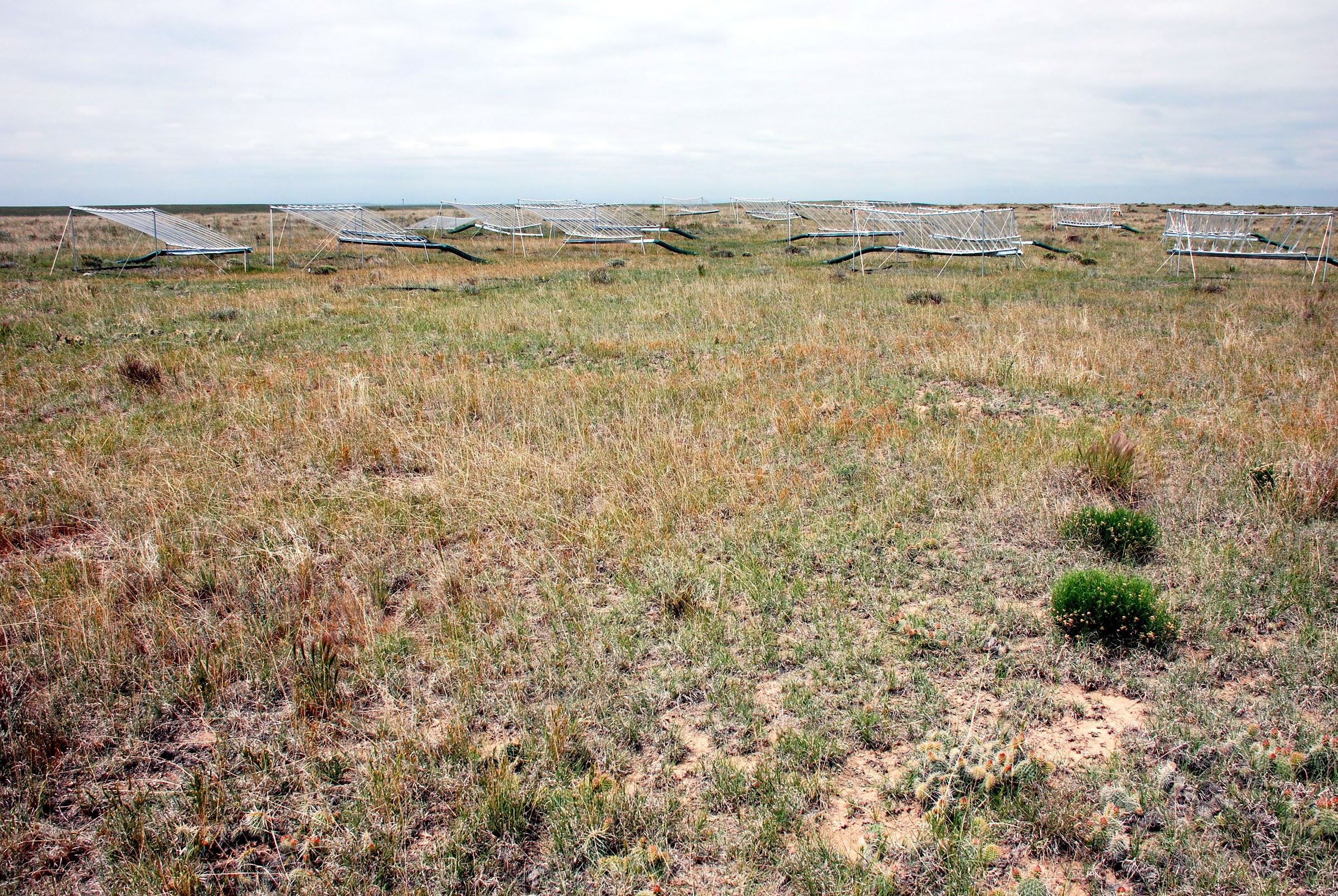 Rainout shelters constructed and used by Knapp grad student Cherwin on the SGS.