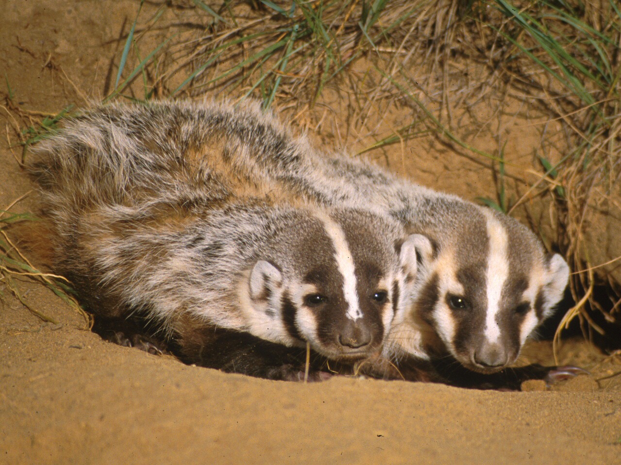Two American badgers (Taxidea taxus) on the shortgrass steppe.