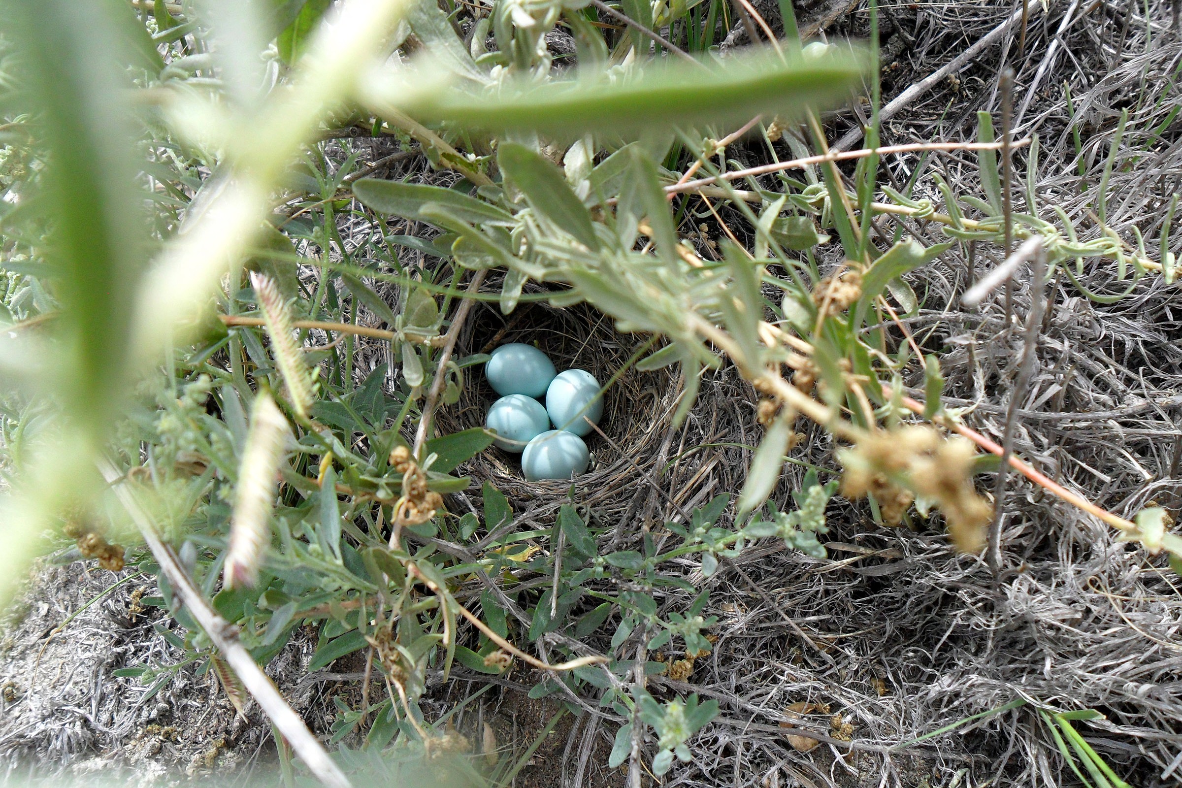 | dc.description.abstract | Lark bunting nest with four light blue eggs, on SGS. | |