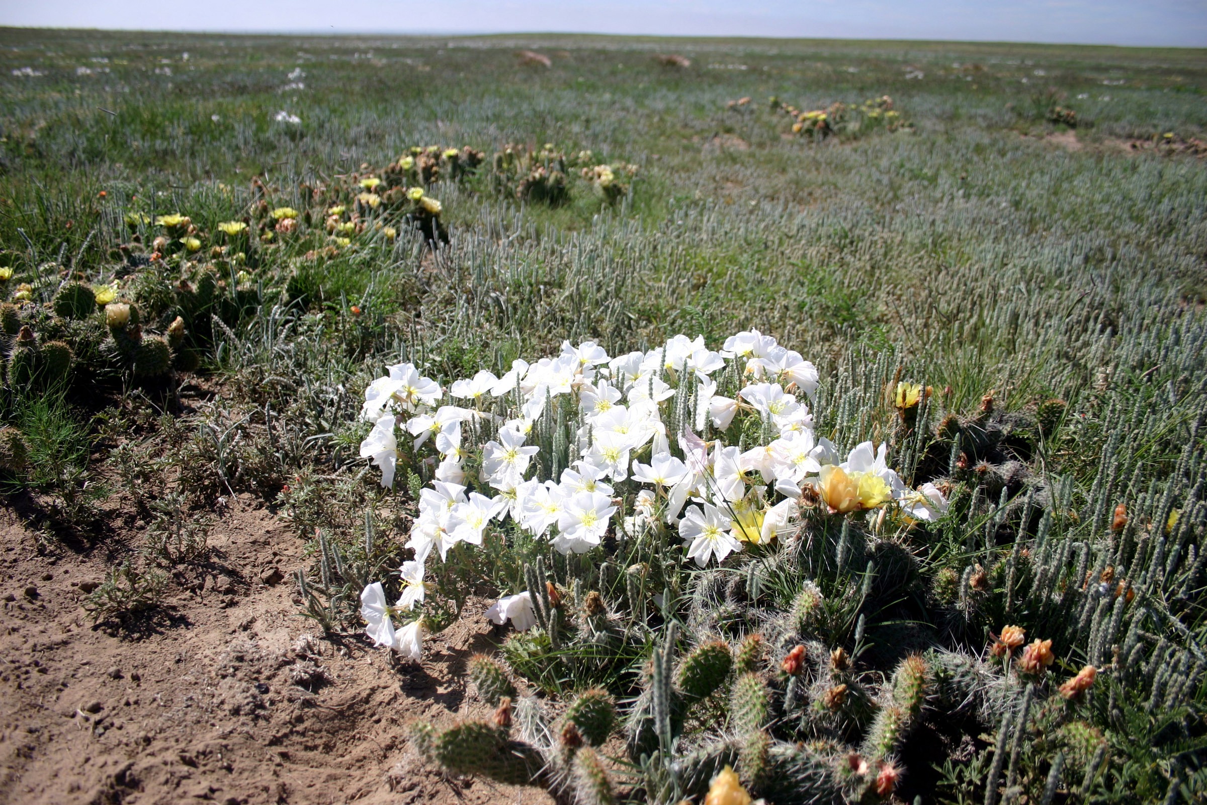 White evening primrose and yellow prickly pear flowers on the SGS, whole plants.