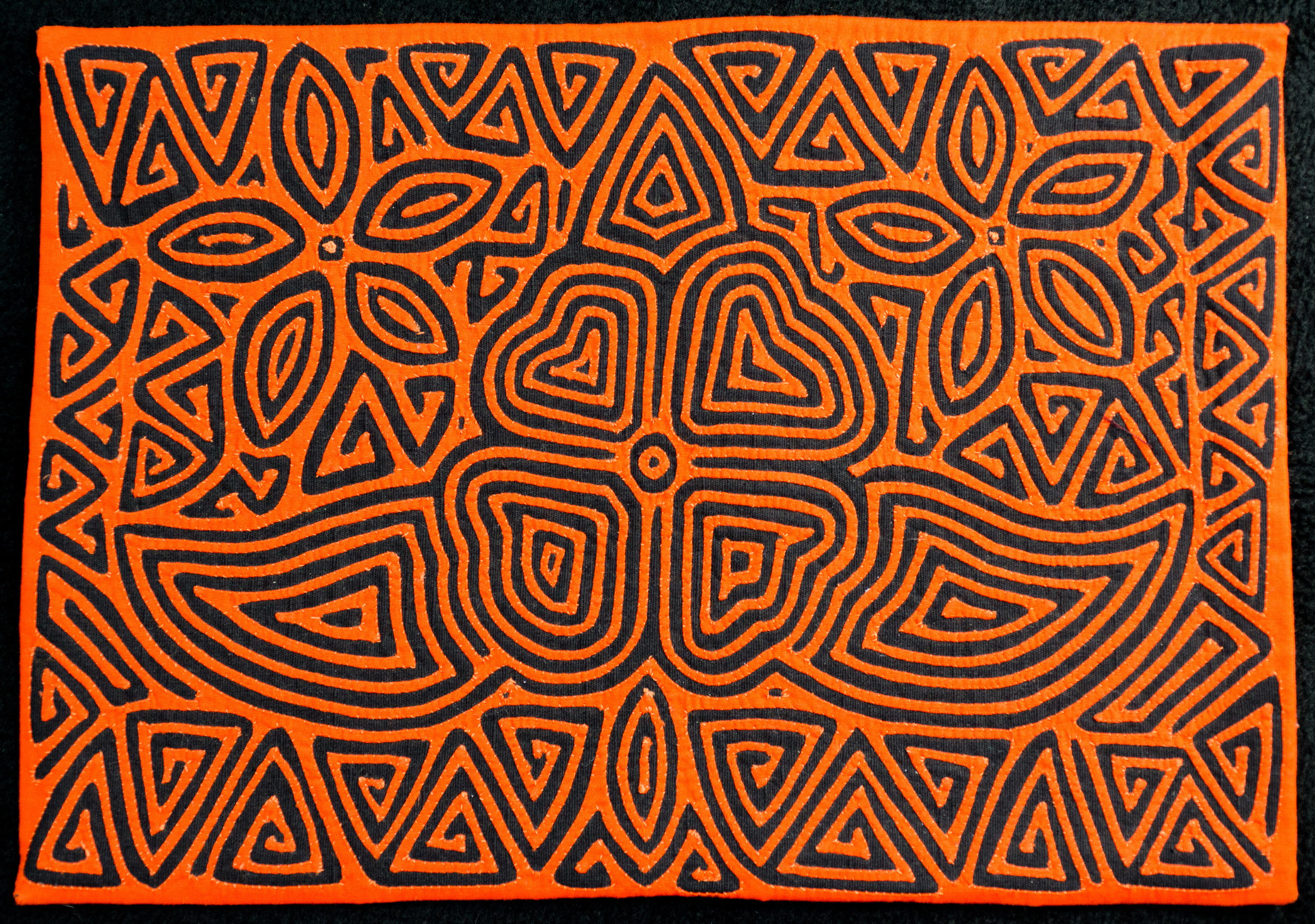 Cotton; 2 layers (orange, black); reverse appliqué, embroidery.