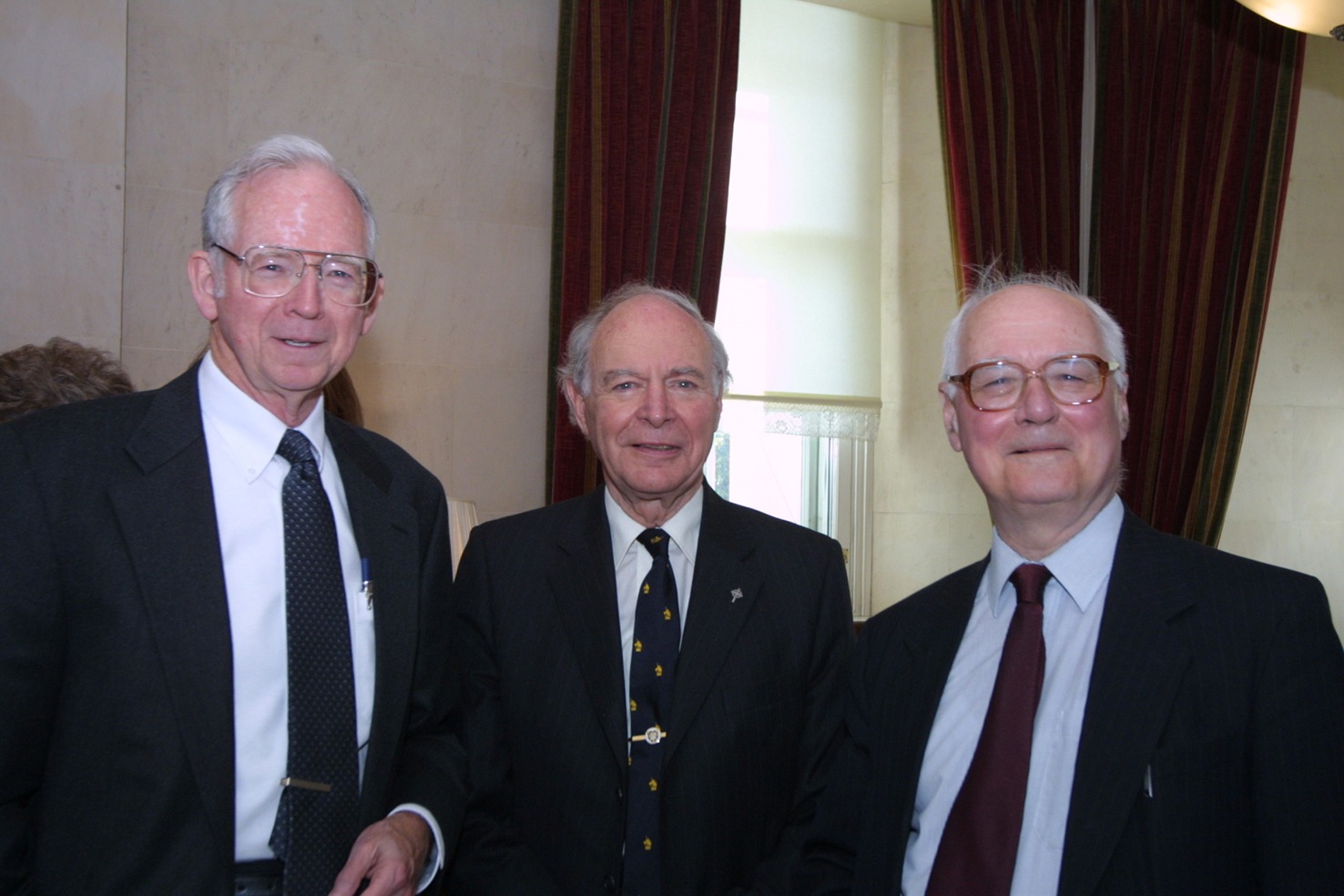 Photograph featuring Dr. Rolston and other Templeton laureates. Holmes Rolston (2003 laureate), Arthur Peacocke (2001 laureate) and John Polkinghorne (2002 laureate).