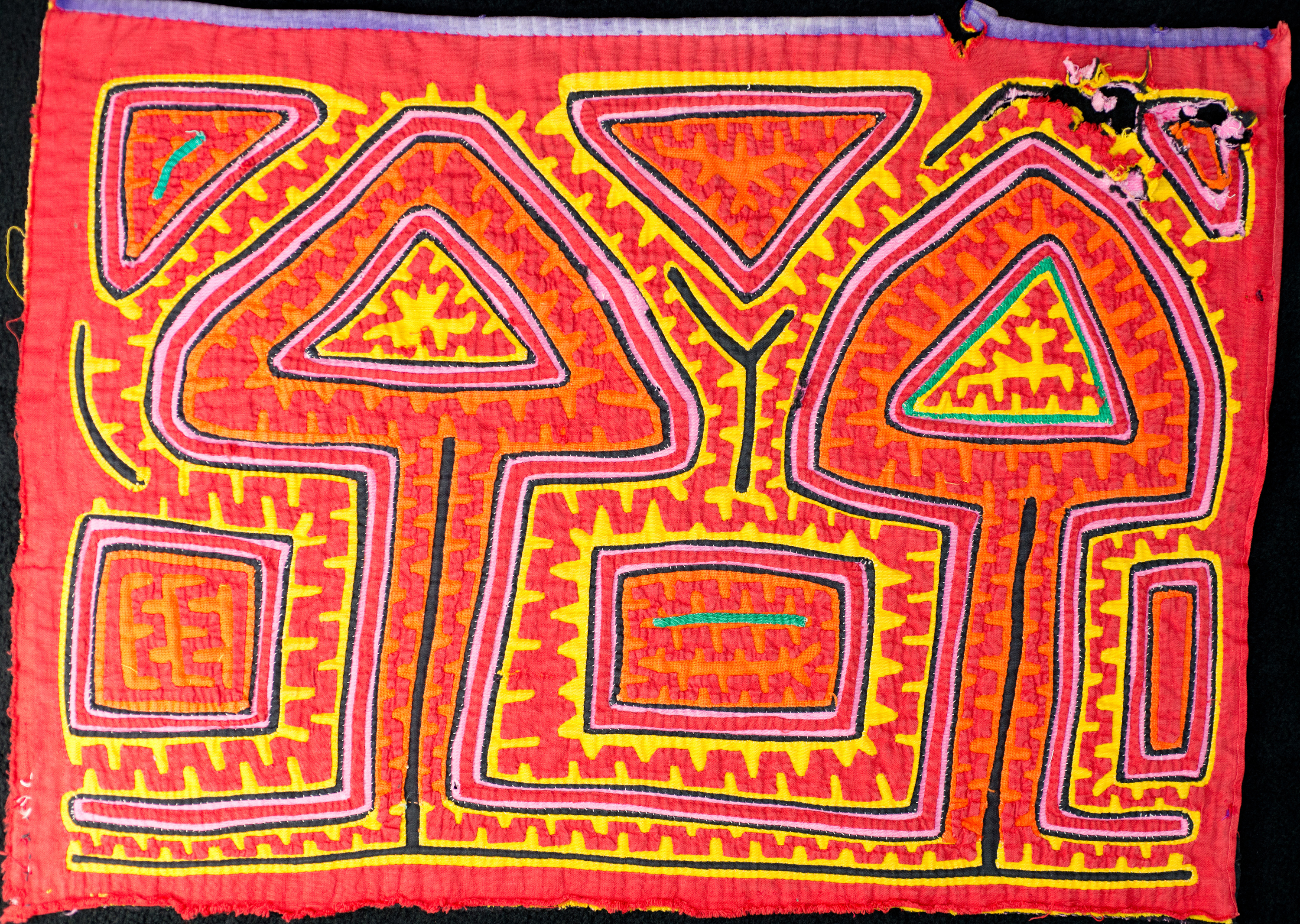 This panel was sewn when mola blouses were loose, sewing was often less refined, and embroidery was less significant to designs.