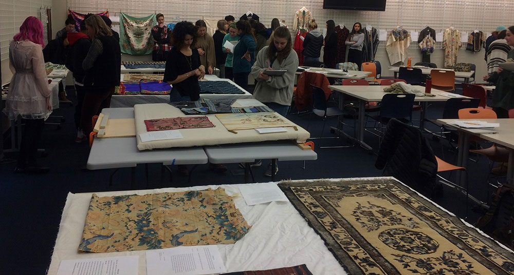 Students examining textiles
