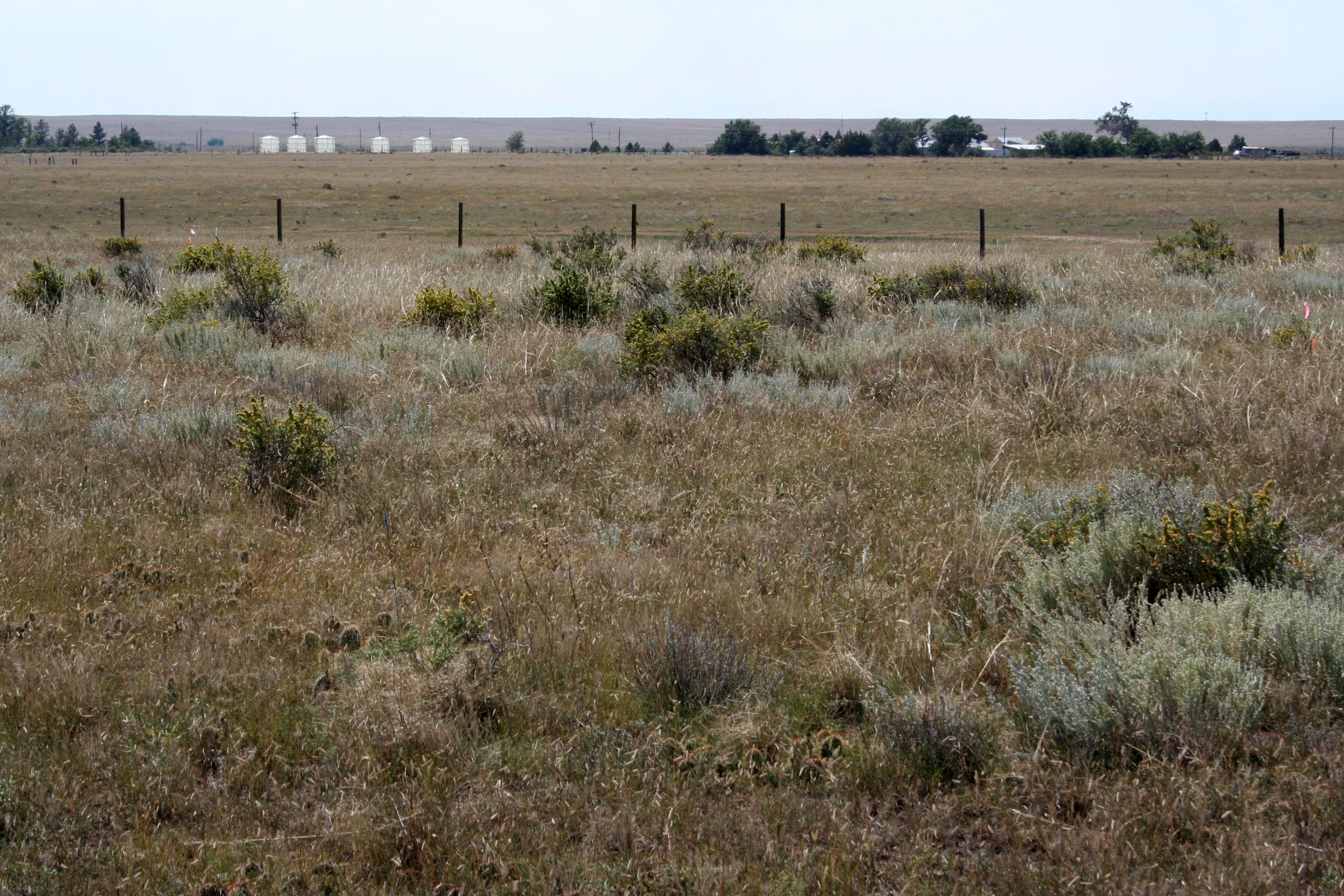 View probably of ungrazed/grazed pastures near ARS HQ on SGS with open-top chambers in distance.