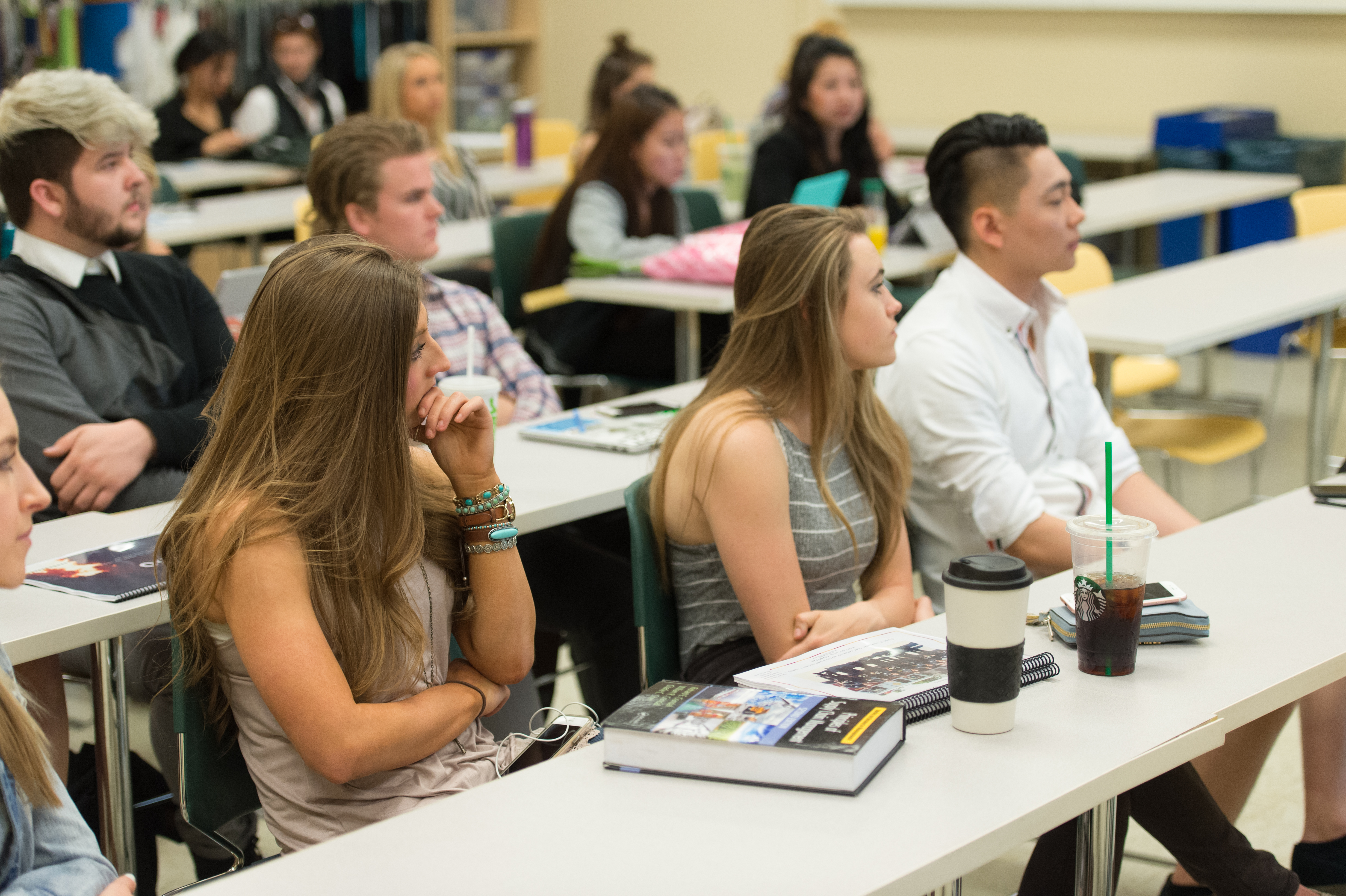 Students observing presentations of prototype firefighter uniforms