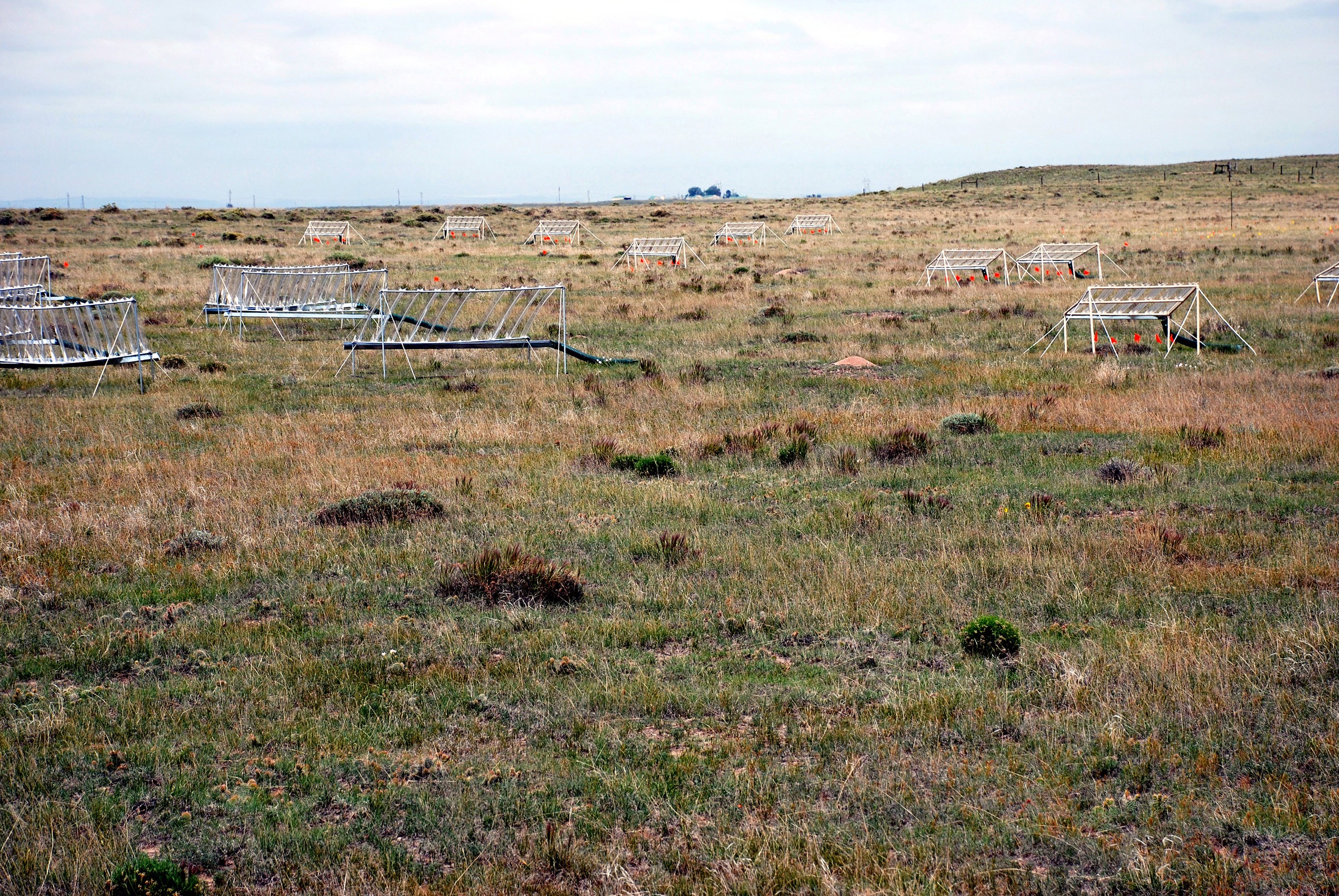Rainout shelters constructed and used by Knapp grad student Cherwin on the SGS.