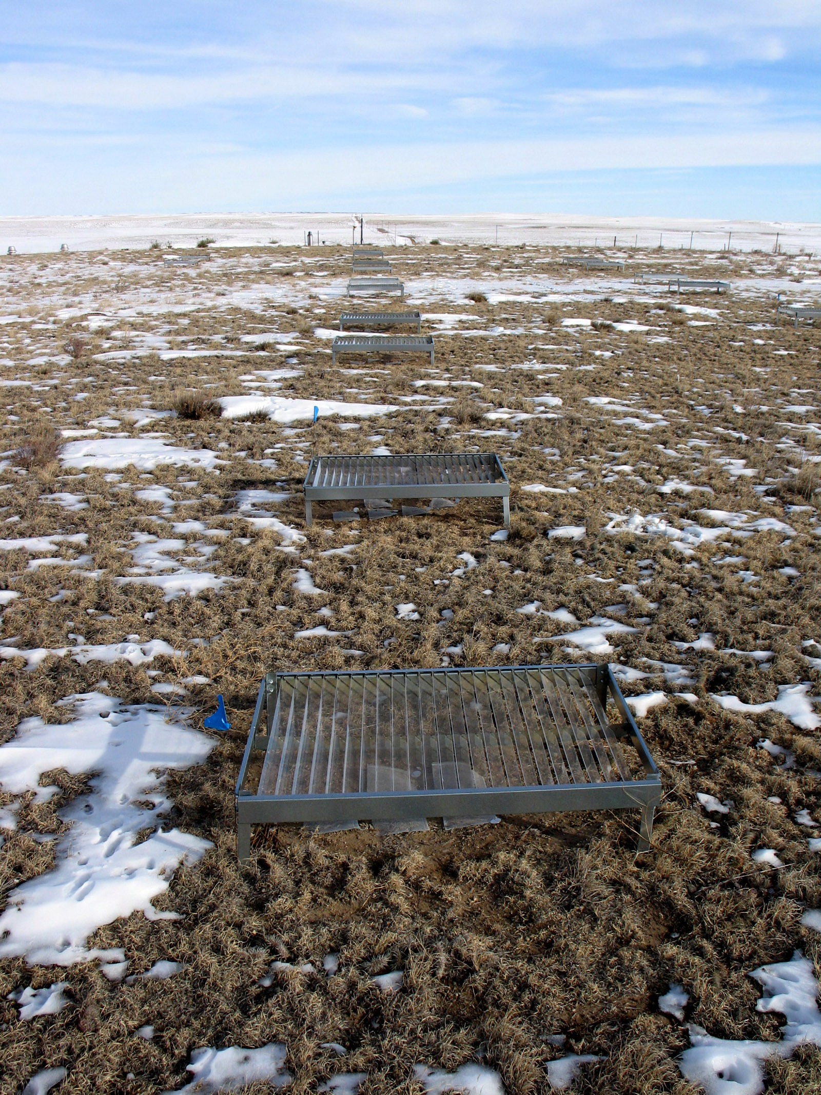 Experimental plot with storm coverings over samples, with scattered snow, on SGS, in Dec 06.