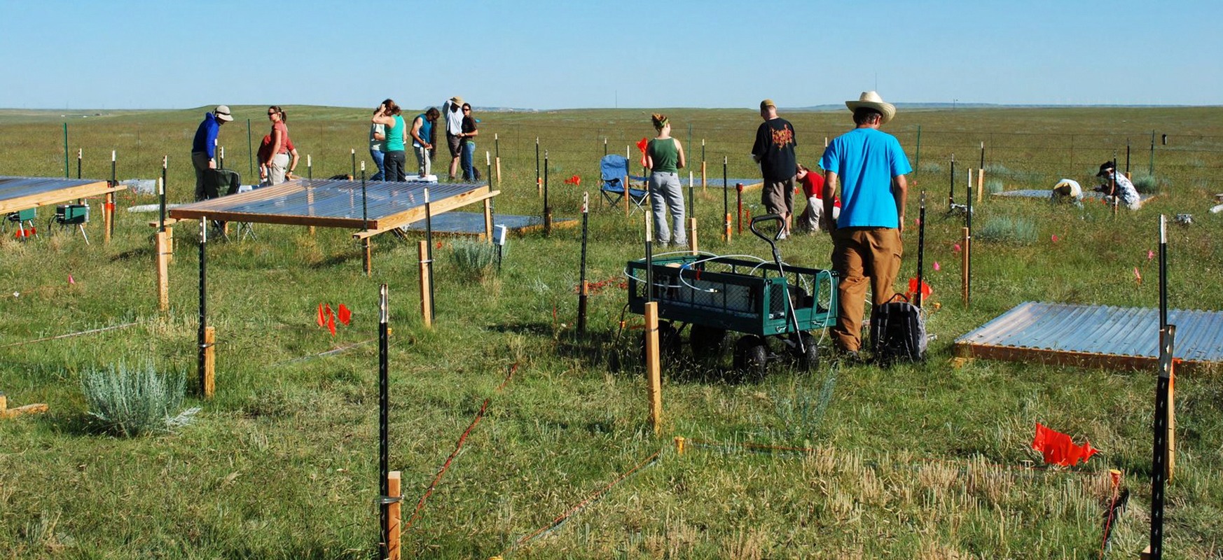 Crowd of researchers on the SGS, installing shelters for big precipitation experiment in 2009.