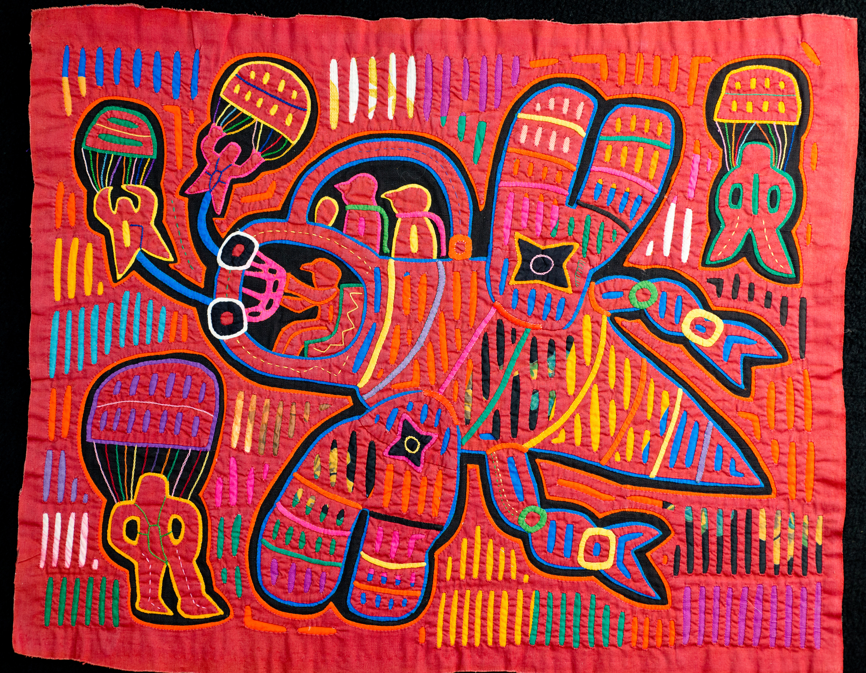 Cotton; 2 layers (red, black); reverse and direct appliqué, embroidery.