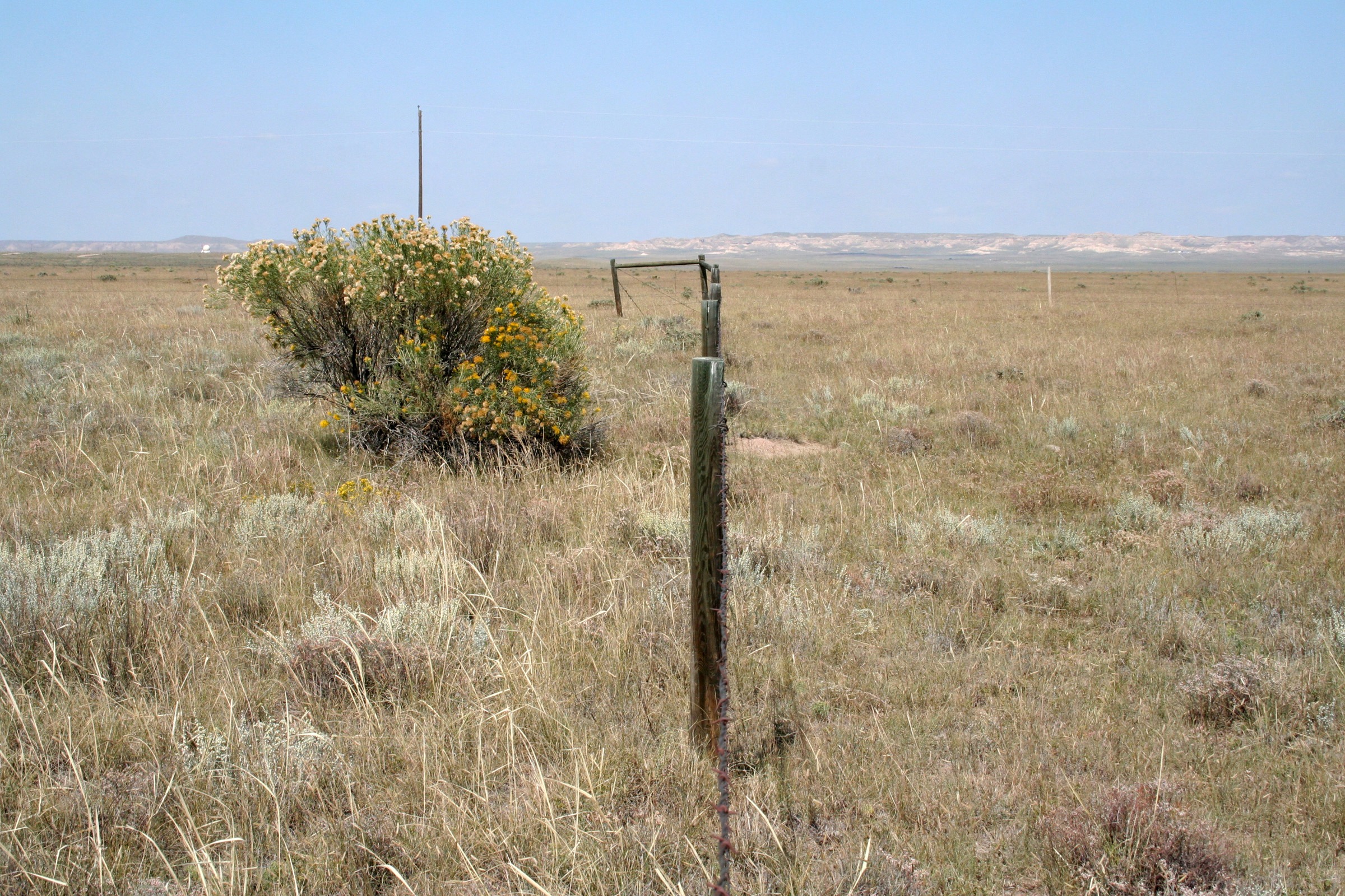 Large rabbitbrush along fence on SGS with buttes in background, probably ungrazed side of fence.