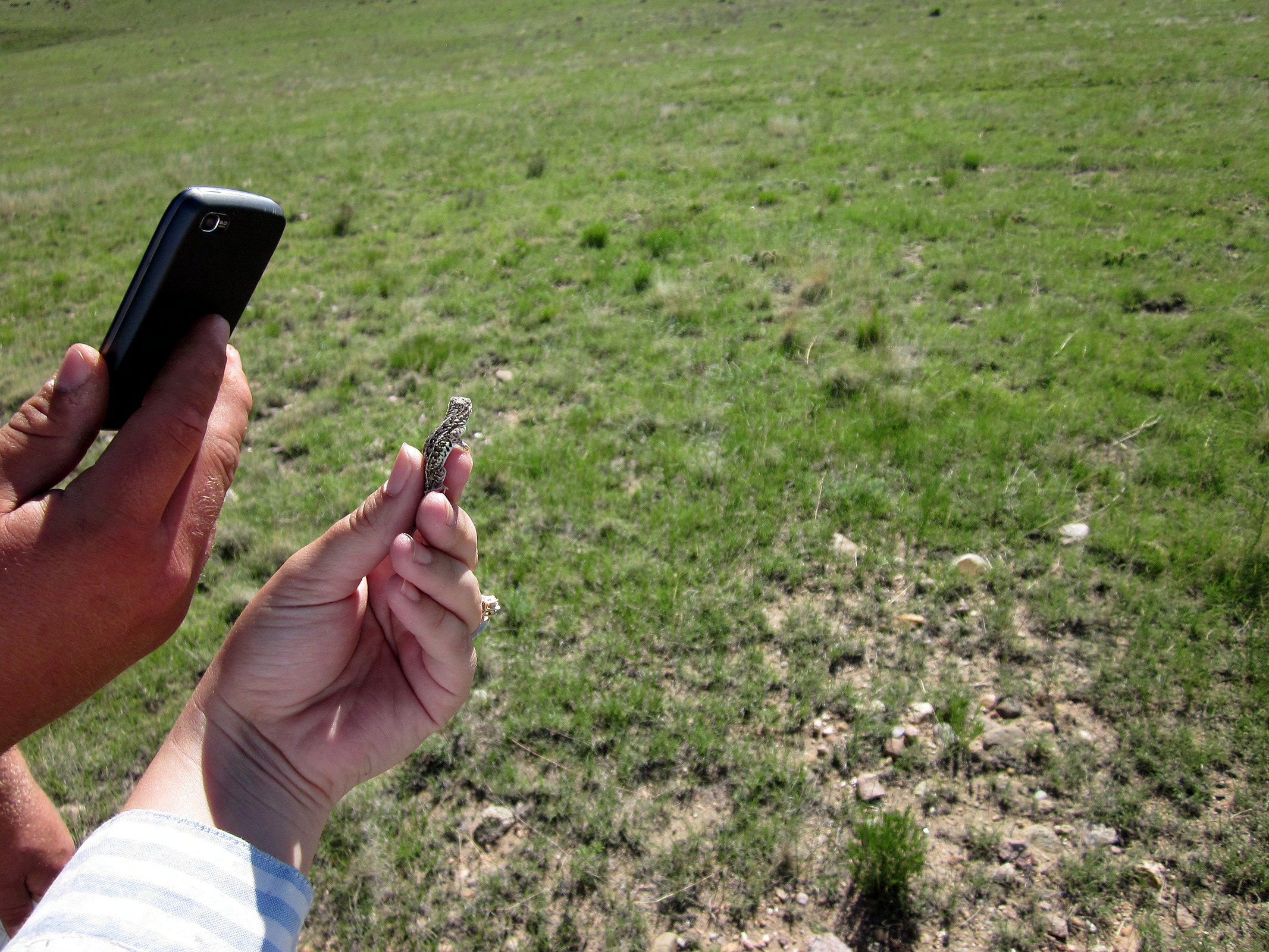 Photographing lesser earless lizard, Holbrookia maculata specimen on the SGS.